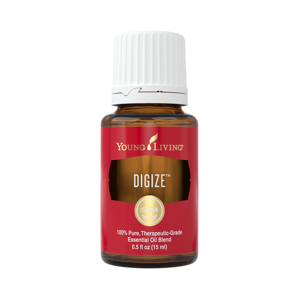 A unique and proprietary Young Living essential oil blend, DiGize™ combines Tarragon, Ginger, Peppermint, Juniper, Fennel, Lemongrass, Anise, and Patchouli essential oils.